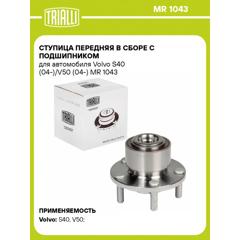 Ступица передняя в сборе с подшипником для автомобиля Volvo S40 (04-)/V50 (04-) Характеристики: Артикул: MR 1043 OEM номера: 30666605, 30683161, 30714492, 30714730, 30730828, 31212698, 31262950, 31340604 Товарная линейка: BLACK Количество на автомобиль: 2 Подходящая гайка колесная AIRLINE:: ASCR006, ASCR007 Сторона установки: Спереди, слева/справа Высота, мм: 108,5 Внутренний диаметр, мм: 78 Внешний диаметр, мм: 131,3 Особенности конструкции:: С подшипником Количество зубьев: 36 Гарантийный срок: 1 год/30 000 км Крепление колёсного диска: M12x1,5 Разболтовка (PCD):: 5x108 Разболтовка (PCD): 5-M12x1.5-108 Подходит для авто: Volvo S40 (04-), V50 (04-), S40 (04-) Для проверки применяемости отправьте VIN автомобиля через вкладку "Есть вопросы о товаре?" Комплектация: Ступица - 1 шт Гарантия: от 1 года.