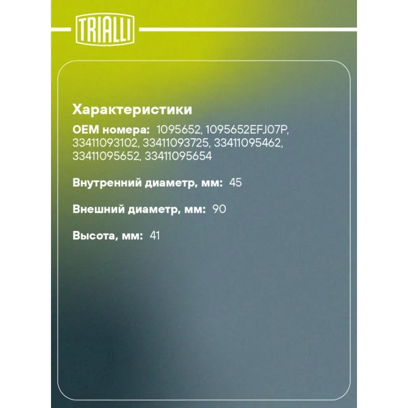 Ступица задняя с подшипником для автомобиля BMW 5 (E39) (95-) Характеристики: Артикул: MR 2680 OEM номера: 1095652, 1095652EFJ07P, 33411093102, 33411093725, 33411095462, 33411095652, 33411095654 Товарная линейка: BLACK Количество на автомобиль: 2 Сторона установки: Сзади, слева/справа Высота, мм: 41 Внутренний диаметр, мм: 45 Внешний диаметр, мм: 90 Особенности конструкции:: С подшипником Количество креп. отверстий: 4 Гарантийный срок: 1 год/30 000 км Подходит для авто: BMW 5 E39 (95-) Для проверки применяемости отправьте VIN автомобиля через вкладку "Есть вопросы о товаре?" Комплектация: Ступица - 1 шт Гарантия: от 1 года.