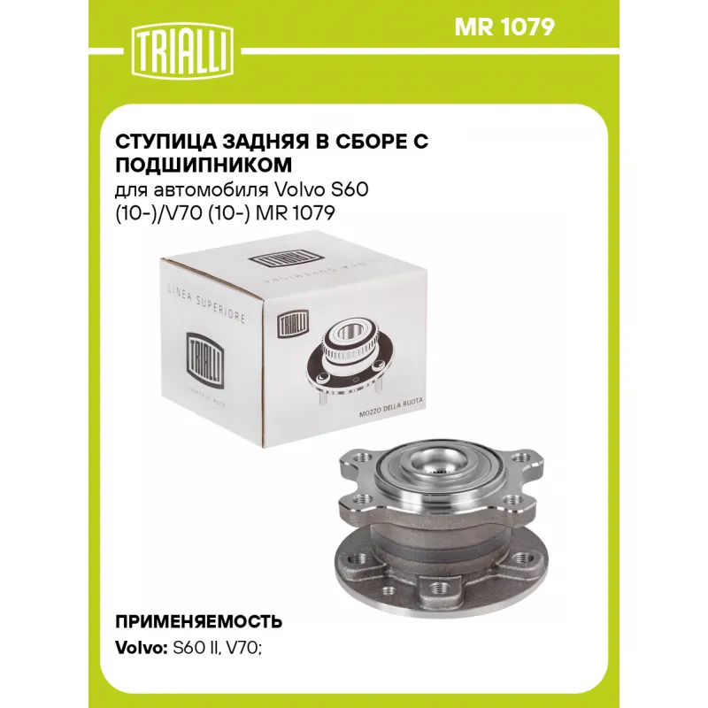 Ступица задняя в сборе с подшипником для автомобиля Volvo S60 (10-)/V70 (10-) Характеристики: Артикул: MR 1079 OEM номера: 30666645, 30760189, 30794978, 307949780, 31212949, 312129490, 312129497, 31262356, 312623560, 312623564, 31277809, 312778095, 31280251, 31360027, 6G912C299VAE, 6G912C299VAF Товарная линейка: BLACK Количество на автомобиль: 2 Подходящий болт колесный AIRLINE:: ABLT022 Сторона установки: Сзади, слева/справа Высота, мм: 92,5 Внешний диаметр, мм: 136 Особенности конструкции:: С подшипником Количество зубьев: 36 Количество креп. отверстий: 4 Гарантийный срок: 1 год/30 000 км Крепление колёсного диска: M14x1,5 Разболтовка (PCD):: 5x108 Разболтовка (PCD): 5-M14x1.5-108 Подходит для авто: Volvo S60 II (10-), V70 (07-), V70 (07-), S60 II (10-), V70 (07-) Для проверки применяемости отправьте VIN автомобиля через вкладку "Есть вопросы о товаре?" Комплектация: Ступица - 1 шт Гарантия: от 1 года.