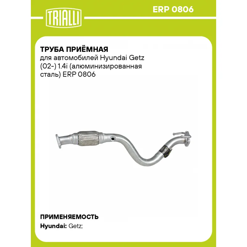 Труба приёмная для автомобилей Hyundai Getz (02-) 1.4i (алюминизированная сталь) Характеристики: Артикул: ERP 0806 OEM номера: 286101C580 Количество на автомобиль: 1 Гарантийный срок: 2 года/60 тыс. Материал: Алюминизированная сталь Длина изделия (мм): 715 Диаметр трубы (мм): 43 Место установки: спереди Товарная линейка: BLACK Дополнительная информация: Этикетка изделия может отличаться от представленной на фото Сопутствующий товар: Глушители основные/глушители дополнительные (резонаторы): EMM 0806, EAM 0806 Подходит для авто: Hyundai Getz (02-) Для проверки применяемости отправьте VIN автомобиля через вкладку "Есть вопросы о товаре?" Комплектация: Труба приемная с виброкомпенсатором - 1 шт Гарантия: от 1 года.