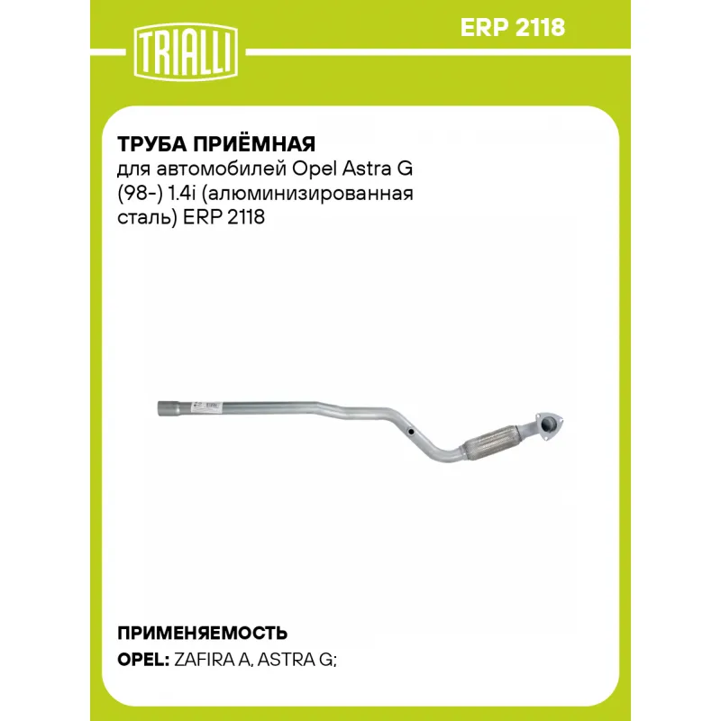 Труба приёмная для автомобилей Opel Astra G (98-) 1.4i (алюминизированная сталь) Характеристики: Артикул: ERP 2118 OEM номера: 24423924, 5854134, 5852134 Гарантийный срок: 2 года/60 тыс. Количество на автомобиль: 1 Материал: Алюминизированная сталь Длина изделия (мм): 1241 Диаметр трубы (мм): 43 Место установки: спереди Товарная линейка: BLACK Дополнительная информация: Этикетка изделия может отличаться от представленной на фото Сопутствующий товар: Глушители основные/глушители дополнительные (резонаторы): EMM 0404, EMM 2111, EAM 2101 Комплектация: Труба приемная с виброкомпенсатором - 1 шт Гарантия: от 1 года.