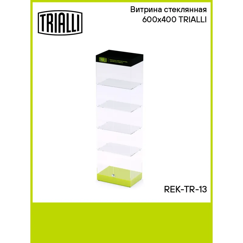 Витрина стеклянная 600х400 TRIALLI Характеристики: Артикул: REK-TR-13 Комплектация: витрина - 1 шт Гарантия: от 1 года.... Читать полностью →