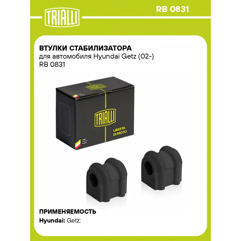 Втулки стабилизатора для автомобиля Hyundai Getz (02-) Характеристики: Артикул: RB 0831 OEM номера: 54813-1C010 Гарантийный срок: 1 года/30 000 км Товарная линейка: BLACK Количество на автомобиль: 1 Ось (сторона установки): Спереди, слева/справа Материал: Резина Внутренний диаметр, мм: 19 Количество деталей в артикуле, шт.: 2 Подходит для авто: Hyundai Getz (02-) Для проверки применяемости отправьте VIN автомобиля через вкладку "Есть вопросы о товаре?" Комплектация: Втулка стабилизатора - 2 шт Гарантия: от 1 года.