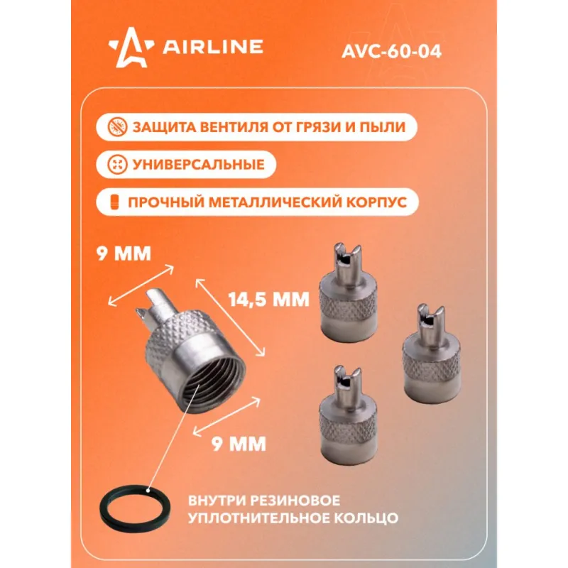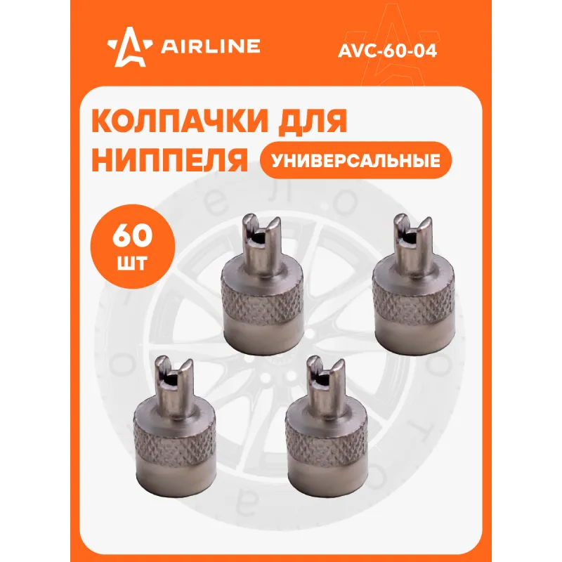 Колпачки на шинный вентиль с ключом, хром, металл (60 шт.) Описание: Колпачки на шинный вентиль или колпачки на ниппель для любого вида транспорта применяются для защиты воздушного ниппеля шины от загрязнений и травли воздуха. Данная модель AIRLINE AVC-60-04 имеет классическую форму. Защитные колпачки отлично подойдут для установки на велосипед, самокат, детской коляски и других колес стандартного вентиля. Надежно предотвращают любые механические повреждения. Колпачки придают колесам эстетический вид. Преимущества: - Морозостойкий материал; - Подходят для любого вида транспорта: автомобилей, мотоциклов, велосипедов, колясок и др.; - Силиконовое уплотнительное кольцо. Оно нужно для обеспечение дополнительной герметичности колесного вентиля, предотвращают утечку воздуха; - Защита вентиля от грязи и пыли; - Встроенный ключ для ниппеля; - Прочная упаковка, предотвращает повреждения колпачков во время транспортировки. Колпачки на ниппель помогут не только защитить вентиль, но и помогут украсить ваше транспортное средство, поэтому станет приятным подарком мужу, папе, бату, дяде, жене, маме, сестре, тете, коллеге. Этот аксессуар для машины - это универсальный подарок на любой праздник. В линейке AIRLINE, вы найдете широкий ассортимент высококачественных автотоваров и средств по уходу за вашим автомобилем, колпачки на шинный вентиль, колпачки на колесные болты гайки, съемник для колпачков, аксессуары для велосипедов, все для тюнинга, колпаки на автомобиль, светящиеся колпачки на колеса, аксессуары для мотоциклов, колясок. Мы гарантируем качество и надежность наших товаров. Характеристики: Артикул: AVC-60-04 Цвет: хром Комплектация: Колпачки - 60 шт ПЭ пакет - 1 шт Гарантия: от 1 года.