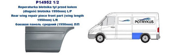 перед задним колесом, средняя база (бок L=1950 мм, колесная база 3550 мм), MB Sprinter (1995-2006)/VW LT II (1996-), сталь