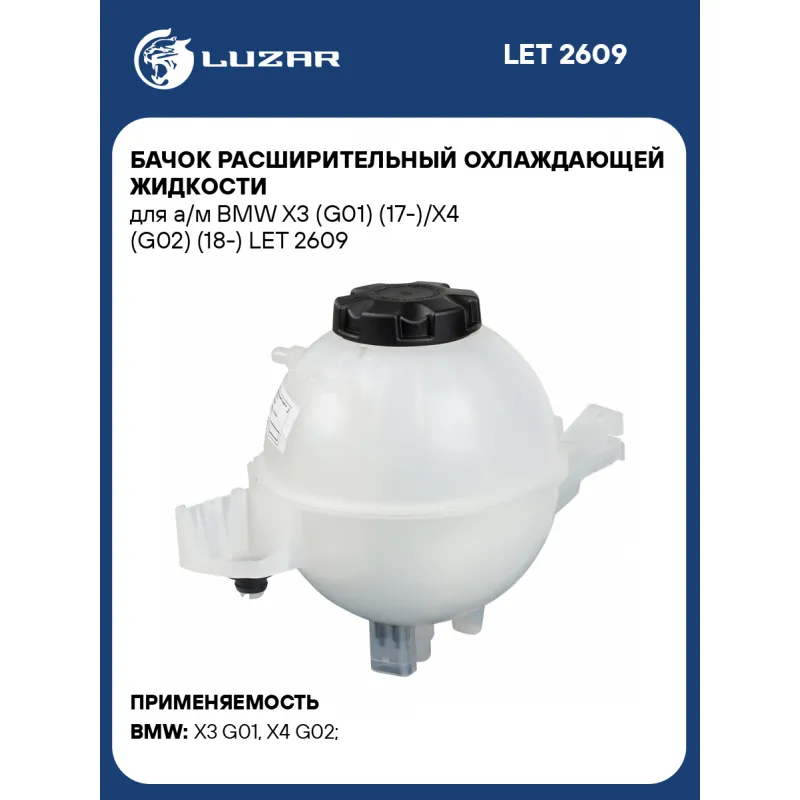 Бачок расширительный охлаждающей жидкости для а/м BMW X3 (G01) (17-)/X4 (G02) (18-) Характеристики: Артикул: LET 2609 OEM номера: 17138742660, 17138610660, 17135A6A030 Трансмиссия: MT/AT Кондиционер: +/- Габариты изделия, мм: 276*200,2*223 Количество на автомобиль: 1 Материал бачков: пластик Комплектация:: с крышкой Примечание: комплектуется силикагелем Подходит для авто: BMW X3 G01 (17-), X4 G02 (18-), X3 G01 (17-) Для проверки применяемости отправьте VIN автомобиля через вкладку "Есть вопросы о товаре?" Комплектация: Бачок расширительный - 1 шт Паспорт изделия - 1 шт Крышка расширительного бачка - 1 шт Гарантия: от 1 года.