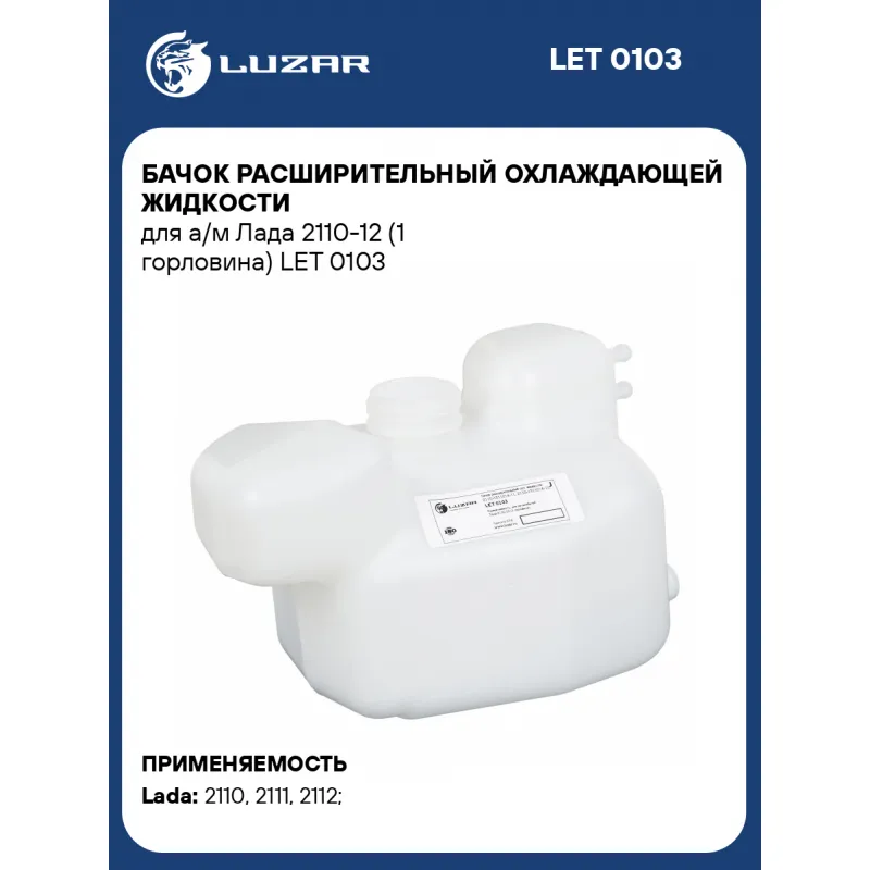 Бачок расширительный охлаждающей жидкости для а/м Лада 2110-12 (1 горловина) Характеристики: Артикул: LET 0103 OEM номера: 2110-1311014-11, 2110-1311014-10 Трансмиссия: MT Кондиционер: +/- Габариты изделия, мм: 273,6*162,9*162 Сопутствующий товар: Радиаторы охлаждения: LRc 0112; LRc 01120 Сопутствующий товар: Крышки (пробки) расширительного бачка: LL 0108 Сопутствующий товар: Патрубки охлаждения (комплект): LPK 0110; LPKh 01211; LPKh 0110 Количество на автомобиль: 1 Материал бачков: пластик Подходит для авто: ВАЗ 2110, 2111, 2112 Для проверки применяемости отправьте VIN автомобиля через вкладку "Есть вопросы о товаре?" Комплектация: Бачок расширительный - 1 шт Паспорт изделия - 1 шт Гарантия: от 1 года.