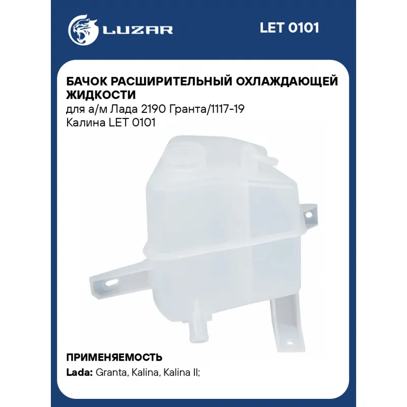 Бачок расширительный охлаждающей жидкости для а/м Лада 2190 Гранта/1117-19 Калина Характеристики: Артикул: LET 0101 OEM номера: 1118-1311010, 1118-1311010-10 Трансмиссия: MT/AT Кондиционер: +/- Габариты изделия, мм: 227,3*208,1*239 Материал бачков: пластик Сопутствующий товар: Радиаторы охлаждения: LRc 0190b; LRc 0192b; LRc 01192b; LRc 01900; LRc 01195; LRc 0194; LRc 01194; LRc 0195; LRc 01195; LRc 01183 Сопутствующий товар: Крышки (пробки) расширительного бачка: LL 0108 Сопутствующий товар: Патрубки охлаждения (комплект): LPK 0190; LP 0190-95; LPK 01192; LPK 0118 Количество на автомобиль: 1 Подходит для авто: ВАЗ Granta (10-), Granta (15-), Kalina (04-), Kalina (04-), Kalina II (13-), Kalina II (15-), Granta (10-), Kalina (04-), Kalina (04-), Kalina II (13-) Для проверки применяемости отправьте VIN автомобиля через вкладку "Есть вопросы о товаре?" Комплектация: Бачок расширительный - 1 шт Паспорт изделия - 1 шт Гарантия: от 1 года.
