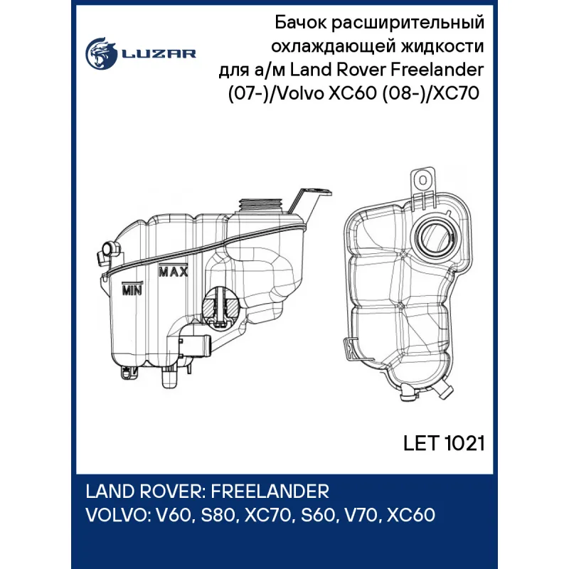 Бачок расширительный охлаждающей жидкости для а/м Land Rover Freelander (07-)/Volvo XC60 (08-)/XC70 (07-) Характеристики: Артикул: LET 1021 OEM номера: 6G918K218CD, 31200320, LR004080, LR002627 Трансмиссия: MT/AT Кондиционер: +/- Габариты изделия, мм: 255*213*154 Материал бачков: пластик Сопутствующий товар: Радиаторы охлаждения... Читать полностью →