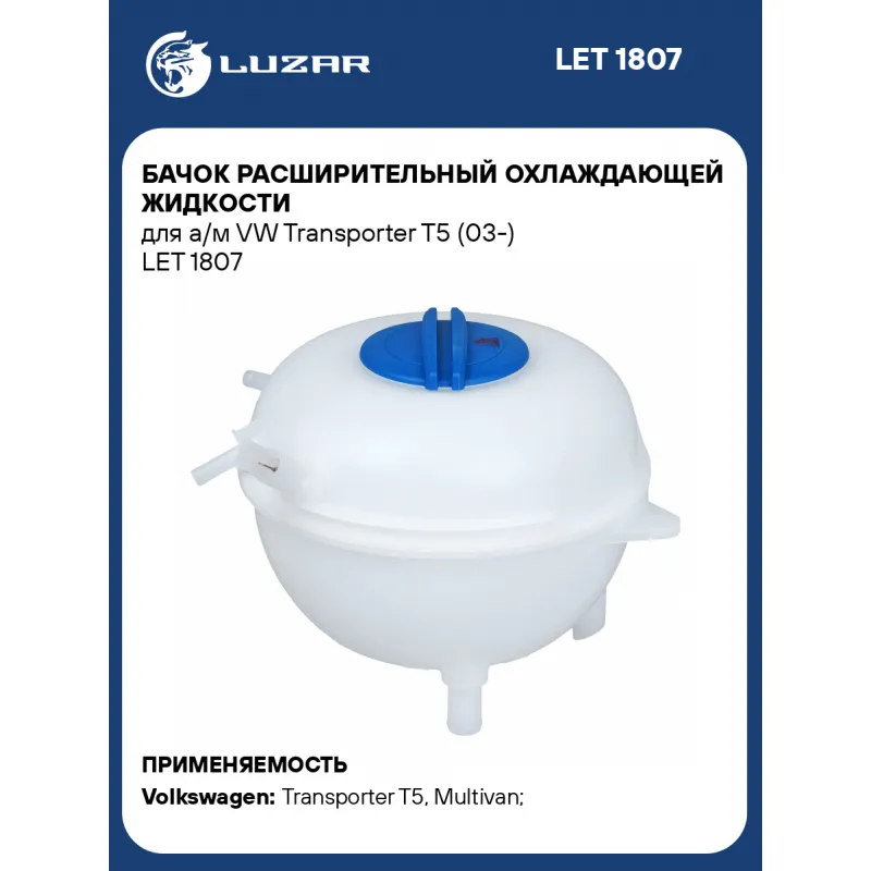 Бачок расширительный охлаждающей жидкости для а/м VW Transporter T5 (03-) Характеристики: Артикул: LET 1807 OEM номера: 7H0121407C, 7H0121407B Трансмиссия: MT/AT Кондиционер: +/- Габариты изделия, мм: 237,2*227*169,5 Сопутствующий товар: Радиаторы охлаждения: LRc 18H7; LRc 18HG Сопутствующий товар: Крышки (пробки) расширительного бачка: LL 1835 Количество на автомобиль: 1 Материал бачков: пластик Комплектация:: с крышкой Подходит для авто: Volkswagen Transporter T5 (03-), Multivan (03-), Transporter T5 (03-) Для проверки применяемости отправьте VIN автомобиля через вкладку "Есть вопросы о товаре?" Комплектация: Бачок расширительный - 1 шт Паспорт изделия - 1 шт Крышка расширительного бачка - 1 шт Гарантия: от 1 года.