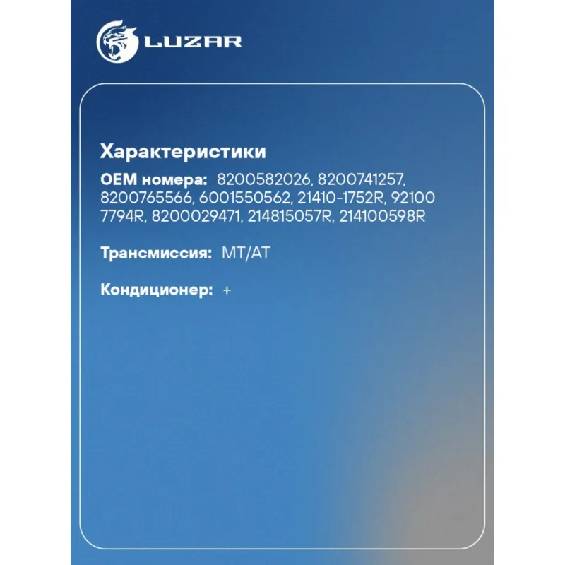 | Сопутствующий товар: Радиаторы кондиционера (конденсеры) | LRAC 0961 |