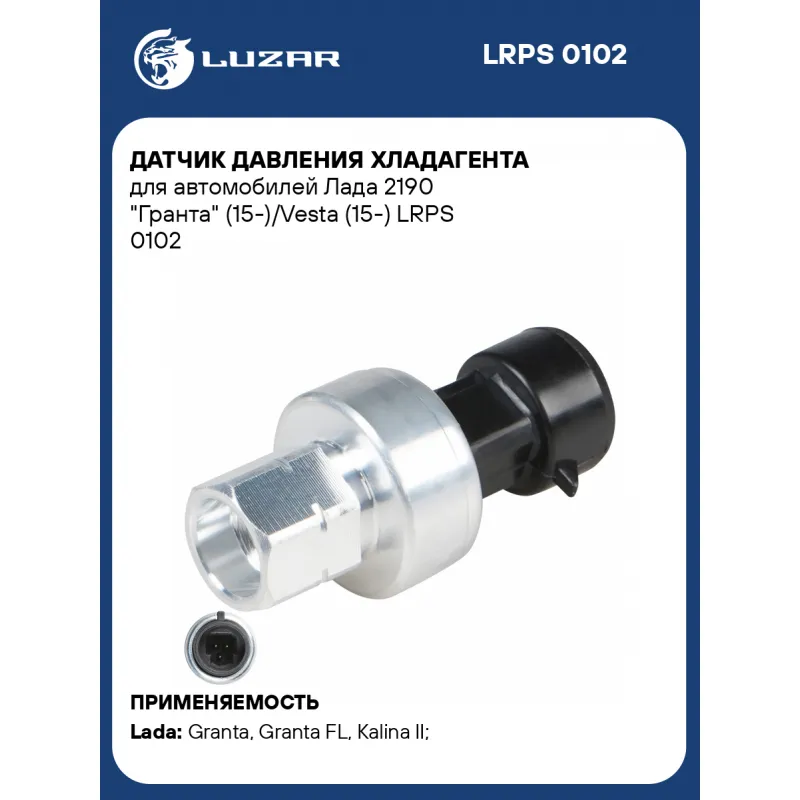 Датчик давления хладагента для автомобилей Лада 2190 "Гранта" (15-)/Vesta (15-) Характеристики: Артикул: LRPS 0102 OEM номера: 21910812731000, 8450101563, 8450039738 Размер резьбы: M10x1.25 Напряжение, В: 12 Тип резьбы: Внутренняя резьба Количество на автомобиль: 1 Подходит для авто: ВАЗ Granta (15-), Granta FL (18-), Kalina II (15-), Vesta (15-), Vesta (15-) Для проверки применяемости отправьте VIN автомобиля через вкладку "Есть вопросы о товаре?" Комплектация: Датчик давления хладагента Гарантия: от 1 года.