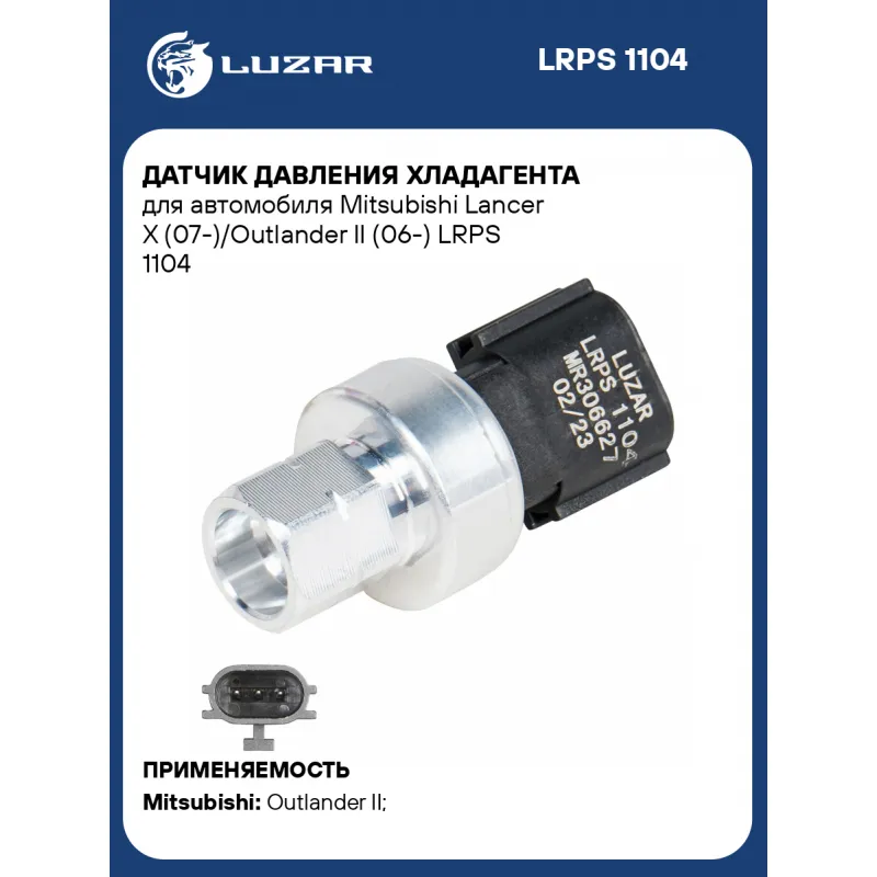 Датчик давления хладагента для автомобиля Mitsubishi Lancer X (07-)/Outlander II (06-) Характеристики: Артикул: LRPS 1104 OEM номера: MR306627, 7815B751 Размер резьбы: М10X1.25 Напряжение, В: 12 Тип резьбы: Внутренняя резьба Количество на автомобиль: 1 Подходящий разъем AIRLINE:: AECC011, AECC334 Подходит для авто: Mitsubishi Outlander II (06-), Outlander III (12-), Lancer X (07-), Outlander III (12-), ASX (10-) Для проверки применяемости отправьте VIN автомобиля через вкладку "Есть вопросы о товаре?" Комплектация: Датчик давления хладагента Гарантия: от 1 года.