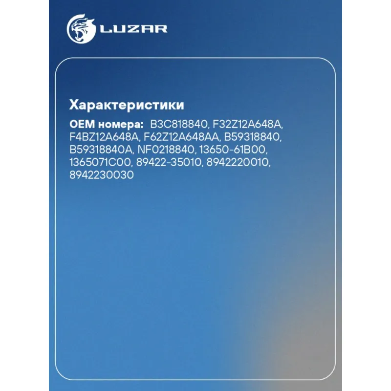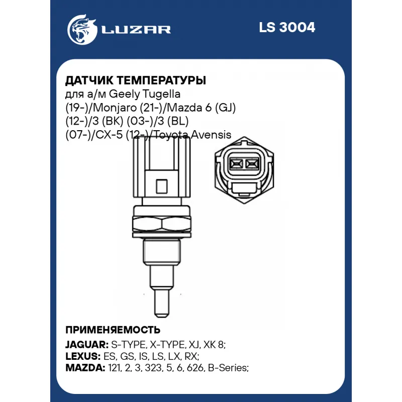 Датчик температуры для а/м Geely Tugella (19-)/Monjaro (21-)/Mazda 6 (GJ) (12-)/3 (BK) (03-)/3 (BL) (07-)/CX-5 (12-)/Toyota Avensis (03-)/Corolla (01-)/RAV4 (00-)/Volvo XC90 (02-) LS 3004) Характеристики: Артикул: LS 3004 OEM номера: B3C818840, F32Z12A648A, F4BZ12A648A, F62Z12A648AA, B59318840, B59318840A, NF0218840, 13650-61B00, 1365071C00, 89422-35010, 8942220010, 8942230030, 31339941, 8653103, 1025034500 Размер резьбы: M12x1,5 Сопутствующий товар: Термостаты: LT 1918; LT 1029; LT 1093 Количество на автомобиль: 1 Сопротивление при температуре 40°С, Ом: 1150 Сопротивление при температуре 80°С, Ом: 318 Сопротивление при температуре 100°С, Ом: 196 Комплектация (кол-во деталей, описание): шайба Комплектация: Датчик температуры - 1 шт Шайба - 1 шт Гарантия: от 1 года.