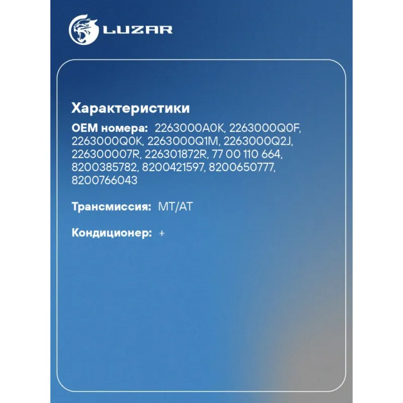 | Количество на автомобиль | 1 |
