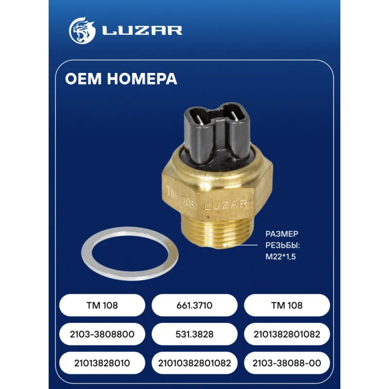 Датчик вентилятора для автомобилей Лада 2103-2107 92/87°С Характеристики: Артикул: LS 0103 OEM номера: ТМ 108, 661.3710, TM 108, 531.3828, 2101382801082, 21013828010, 21010382801082, 2103-38088-00, 2140-3808610 Размер резьбы: M22*1,5 Температура включения, °С: 92 Температура выключения, °С: 87 Количество на автомобиль: 1 Трансмиссия: MT Кондиционер: - Подходит для авто: ВАЗ 1111 (Ока), 2103, 2106, 2104, 2107, 2104, 2108, 2108, 2109, 2109, 21099, 21099 IZH 2126, 2127, 2717 AZLK 2140, 2141 VIS 2345, 1705, 1705, 2347, 2347 ГАЗ 3110, 3110, 3110, 31105, 31105, 3302, 2217, 2752, 2705, 3221 ЗАЗ 1102, 1103, 1105, Tavria, Slavuta ЛуАЗ 1301, 1302 Для проверки применяемости отправьте VIN автомобиля через вкладку "Есть вопросы о товаре?" Комплектация: Датчик вентилятора - 1 шт Уплотнительная прокладка - 1 шт Гарантия: от 1 года.