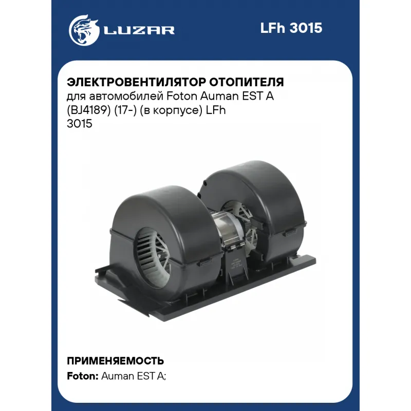 Электровентилятор отопителя для автомобилей Foton Auman EST A (BJ4189) (17-) (в корпусе) Характеристики: Артикул: LFh 3015 OEM номера: H4811010005, H4811010005A0 Мощность, Вт: 360 Сила тока, А: 15 Диаметр крыльчатки, мм: - Обороты, об/мин: 3450 Высота крыльчатки, мм: - Напряжение, В: 24 Количество на автомобиль: 1 Тип вентилятора: центробежный Конструкция: в сборе с корпусом Подходит для авто: Foton Auman EST A (BJ4189) (17-) Для проверки применяемости отправьте VIN автомобиля через вкладку "Есть вопросы о товаре?" Комплектация: Электровентилятор отопителя - 1 шт Паспорт изделия - 1 шт Гарантия: от 1 года.