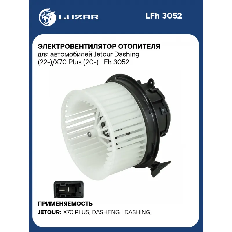 Электровентилятор отопителя для автомобилей Jetour Dashing (22-)/X70 Plus (20-) Характеристики: Артикул: LFh 3052 OEM номера: F188107012, F168107060 Мощность, Вт: 312 Сила тока, А: 26 Диаметр крыльчатки, мм: 150 Обороты, об/мин: 3700 Высота крыльчатки, мм: 67,5 Напряжение, В: 12 Количество на автомобиль: 1 Тип вентилятора: центр... Читать полностью →