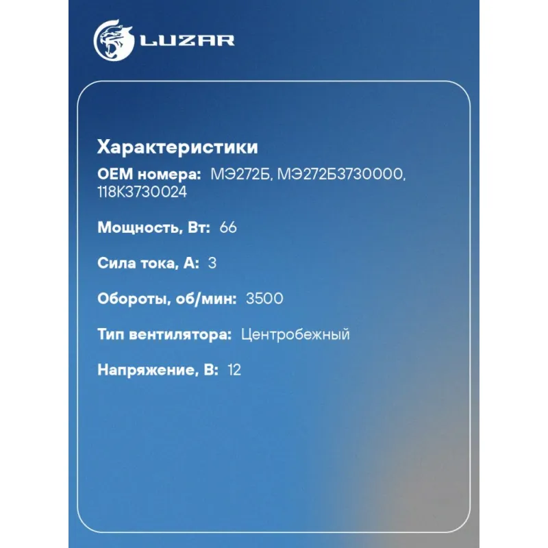 Электродвигатель вентилятора отопителя для автомобилей ЗИЛ 5301,4333,4331,494560 (МЭ272Б) 12V (без крыльчатки) LFh 0327 LUZAR