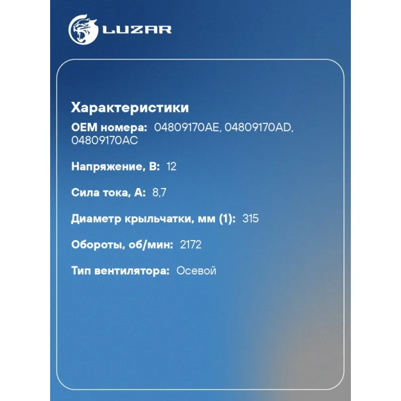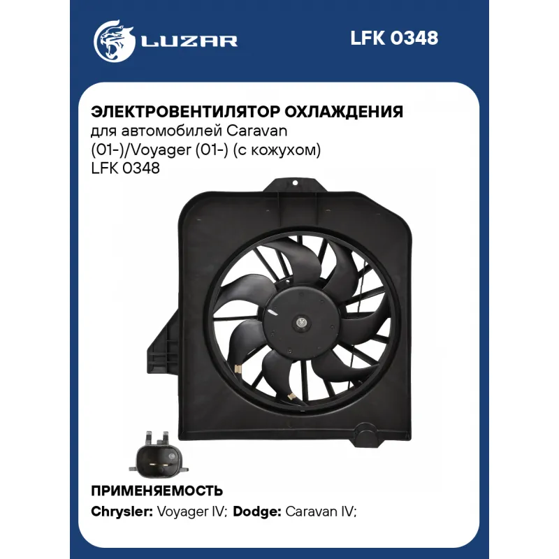 Электровентилятор охлаждения для автомобилей Caravan (01-)/Voyager (01-) (с кожухом) LFK 0348 LUZAR
