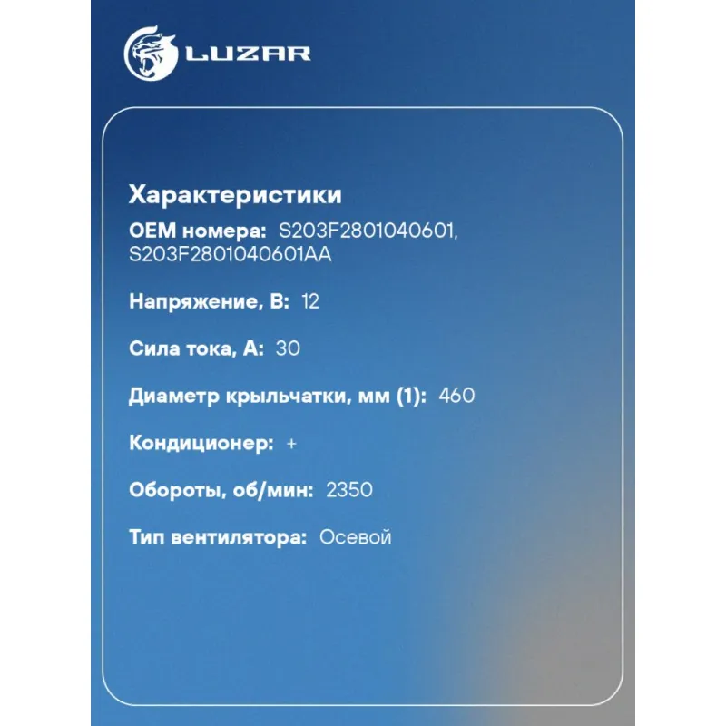 Электровентилятор охлаждения для автомобилей Changan CS55 Plus (UNI-S) (19-) 1.5T (с кожухом) Характеристики: Артикул: LFK 3050 OEM номера: S203F2801040601, S203F2801040601AA Количество на автомобиль: 1 Напряжение, В: 12 Сила тока, А: 30 Диаметр крыльчатки, мм (1): 460 Кондиционер: + Обороты, об/мин: 2350 Тип вентилятора: осевой Диаметр крыльчатки, мм (2): - Мощность, Вт: 360 Подходит для авто: Changan CS55 Plus (21-) Для проверки применяемости отправьте VIN автомобиля через вкладку "Есть вопросы о товаре?" Комплектация: Электровентилятор охлаждения - 1 шт Паспорт изделия - 1 шт Гарантия: от 1 года.