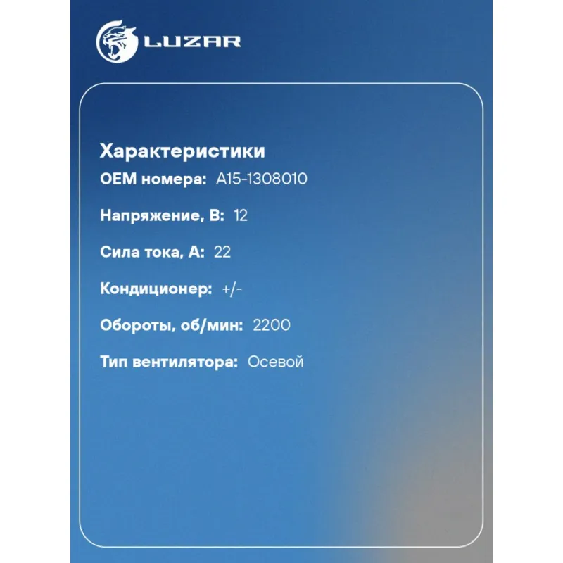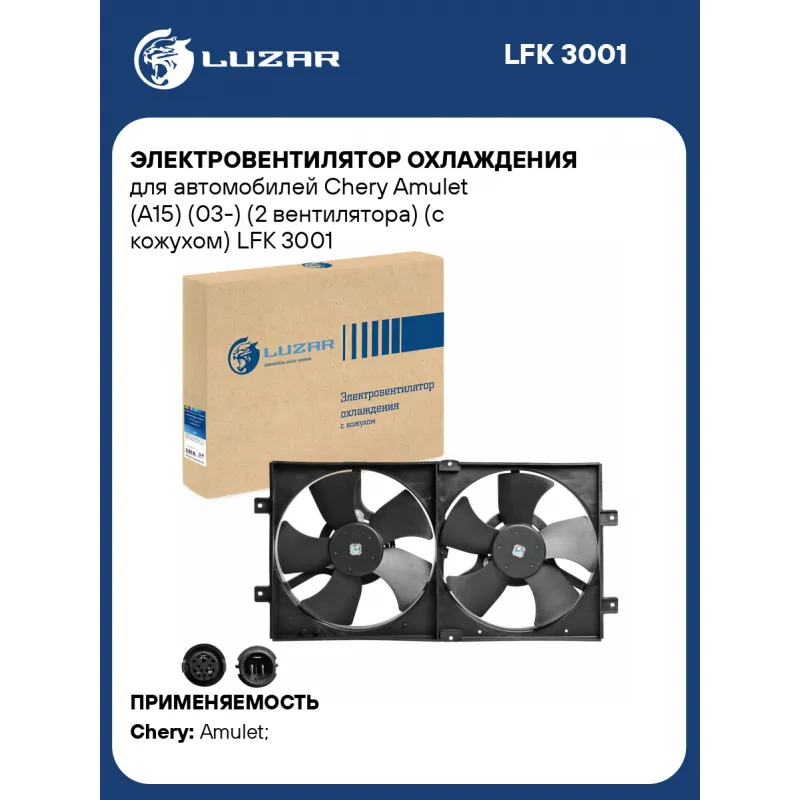 Электровентилятор охлаждения для автомобилей Chery Amulet (A15) (03-) (2 вентилятора) (с кожухом) Характеристики: Артикул: LFK 3001 OEM номера: A15-1308010 Количество на автомобиль: 1 Напряжение, В: 12 Сила тока, А: 22 Кондиционер: +/- Обороты, об/мин: 2200 Тип вентилятора: осевой Мощность, Вт: 264 Подходит для авто: Chery Amulet (A15) (03-), Amulet (A15) (03-) Для проверки применяемости отправьте VIN автомобиля через вкладку "Есть вопросы о товаре?" Комплектация: Электровентилятор охлаждения - 1 шт Паспорт изделия - 1 шт Гарантия: от 1 года.