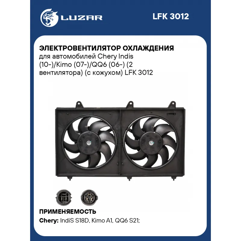 Электровентилятор охлаждения для автомобилей Chery Indis (10-)/Kimo (07-)/QQ6 (06-) (2 вентилятора) (с кожухом) Характеристики: Артикул: LFK 3012 OEM номера: S181308000, S211308000, S211308010AB, S211308010 Количество на автомобиль: 1 Напряжение, В: 12 Сила тока, А: 28 Диаметр крыльчатки, мм (1): 282 Кондиционер: +/- Обороты, об/мин: 2600 Тип вентилятора: осевой Диаметр крыльчатки, мм (2): 282 Мощность, Вт: 336 Подходит для авто: Chery IndiS S18D (10-), Kimo A1 (07-), QQ6 S21 (06-) Для проверки применяемости отправьте VIN автомобиля через вкладку "Есть вопросы о товаре?" Комплектация: Электровентилятор охлаждения - 1 шт Паспорт изделия - 1 шт Гарантия: от 1 года.