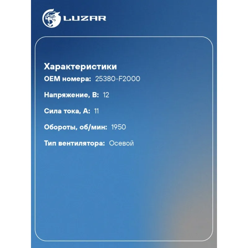 Электровентилятор охлаждения для автомобилей Elantra (AD) (15-) 1.6i/2.0i (с кожухом и резистором) Характеристики: Артикул: LFK 08X6 OEM номера: 25380-F2000 Количество на автомобиль: 1 Напряжение, В: 12 Сила тока, А: 11 Обороты, об/мин: 1950 Тип вентилятора: осевой Мощность, Вт: 132 Сопутствующий товар: Радиаторы охлаждения: LRc... Читать полностью →