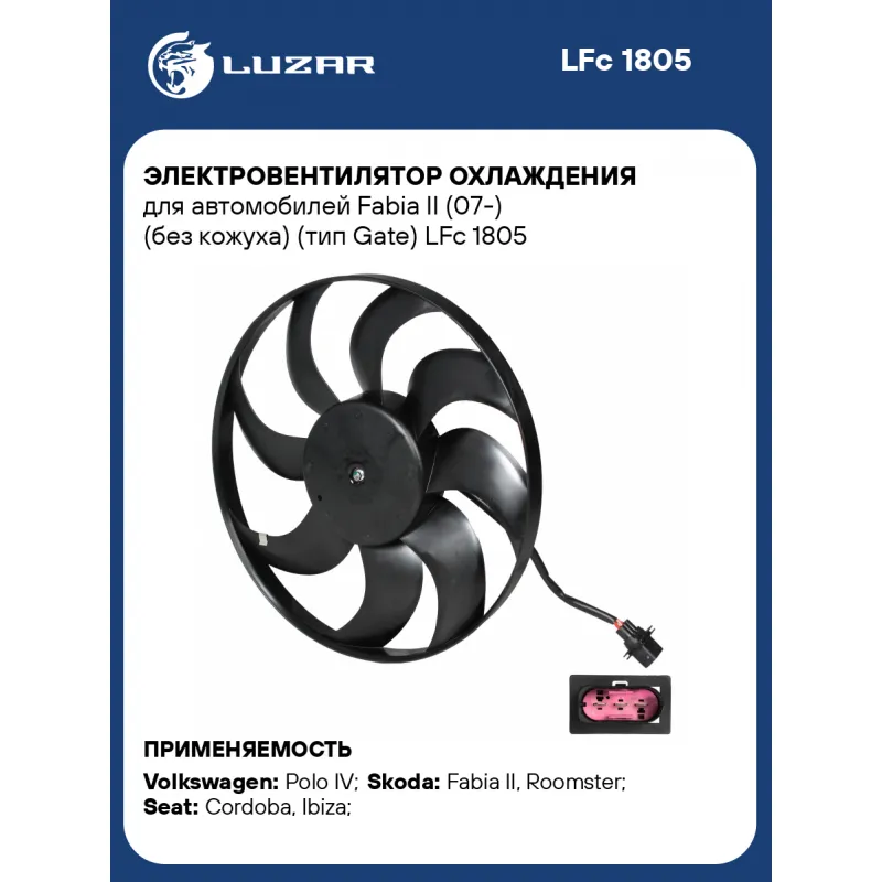 Электровентилятор охлаждения для автомобилей Fabia II (07-) (без кожуха) (тип Gate) Характеристики: Артикул: LFc 1805 OEM номера: 6Q0 959 455 AE Количество на автомобиль: 1 Напряжение, В: 12 Сила тока, А: 22,6 Диаметр крыльчатки, мм (1): 387 Кондиционер: +/- Обороты, об/мин: 2400 Тип вентилятора: осевой Мощность, Вт: 271 Сопутствующий товар: Радиаторы охлаждения: LRc 1835; LRc 1853; LRc 18QJ; LRc 18QR Сопутствующий товар: Радиаторы кондиционера (конденсеры): LRAC 18QR Сопутствующий товар: Резисторы нагрузочные: LFR 18531; LFR 1854 Подходит для авто: Volkswagen Polo IV (01-), Polo IV (01-) Skoda Fabia II (07-), Roomster (06-) Seat Cordoba (00-), Cordoba (00-), Ibiza (00-), Ibiza (00-) Для проверки применяемости отправьте VIN автомобиля через вкладку "Есть вопросы о товаре?" Комплектация: Электровентилятор охлаждения - 1 шт Паспорт изделия - 1 шт Гарантия: от 1 года.