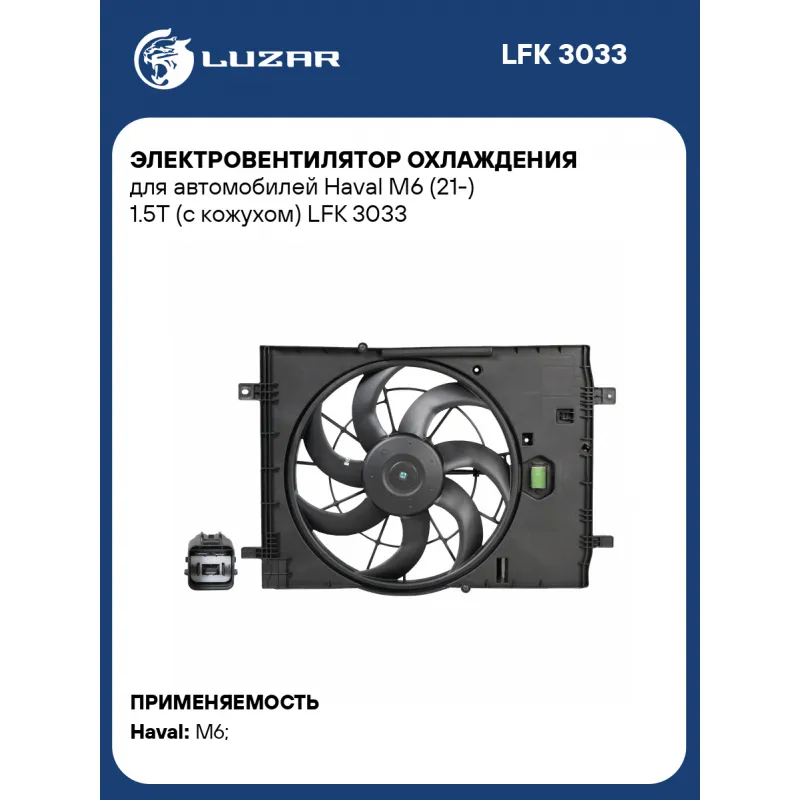 Электровентилятор охлаждения для автомобилей Haval M6 (21-) 1.5T (с кожухом) LFK 3033 LUZAR