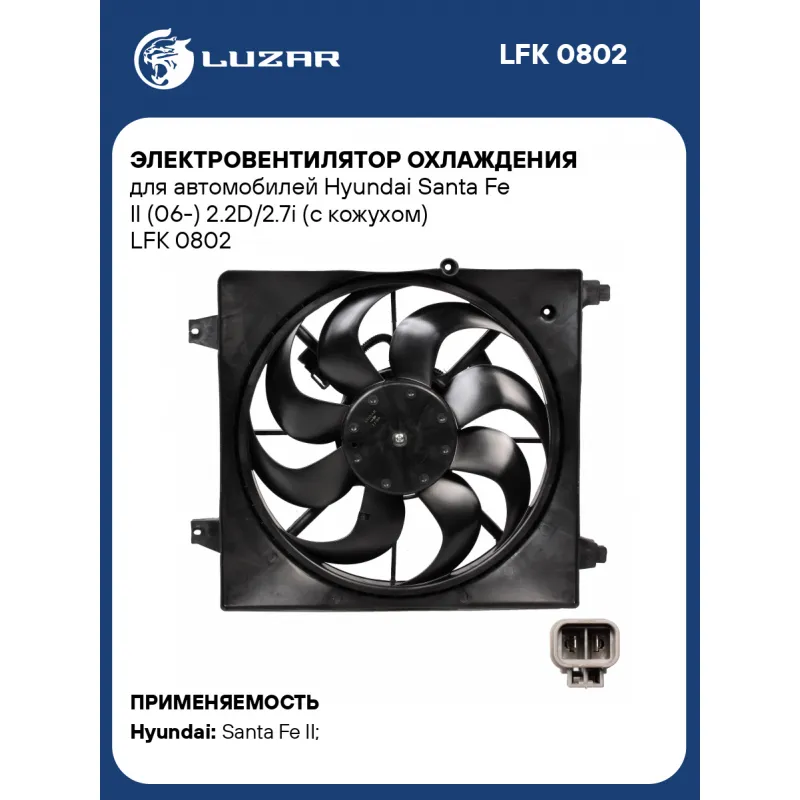 Электровентилятор охлаждения для автомобилей Hyundai Santa Fe II (06-) 2.2D/2.7i (с кожухом) Характеристики: Артикул: LFK 0802 OEM номера: 25380-2B000, 25380-2B100 Количество на автомобиль: 1 Напряжение, В: 12 Сила тока, А: 12 Диаметр крыльчатки, мм (1): - Кондиционер: + Обороты, об/мин: 2100 Тип вентилятора: осевой Диаметр крыльчатки, мм (2): - Мощность, Вт: 144 Сопутствующий товар: Радиаторы охлаждения: LRc 08123; LRc HUSf06320 Сопутствующий товар: Радиаторы кондиционера (конденсеры): LRAC 0863 Сопутствующий товар: Резисторы нагрузочные: LFR 0807 Подходит для авто: Hyundai Santa Fe II (06-) Для проверки применяемости отправьте VIN автомобиля через вкладку "Есть вопросы о товаре?" Комплектация: Электровентилятор охлаждения - 1 шт Паспорт изделия - 1 шт Гарантия: от 1 года.