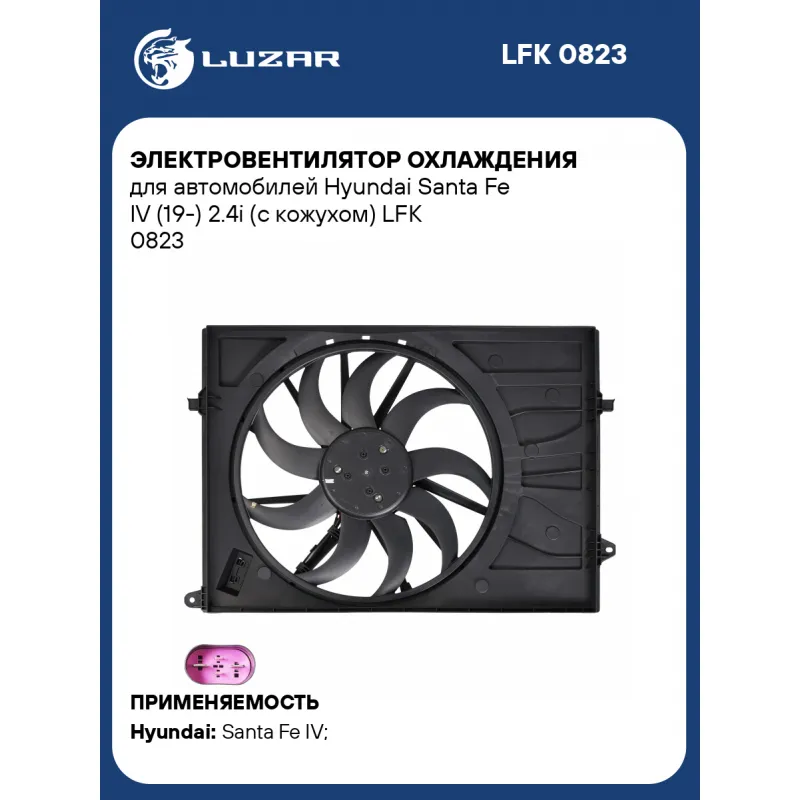Электровентилятор охлаждения для автомобилей Hyundai Santa Fe IV (19-) 2.4i (с кожухом) LFK 0823 LUZAR