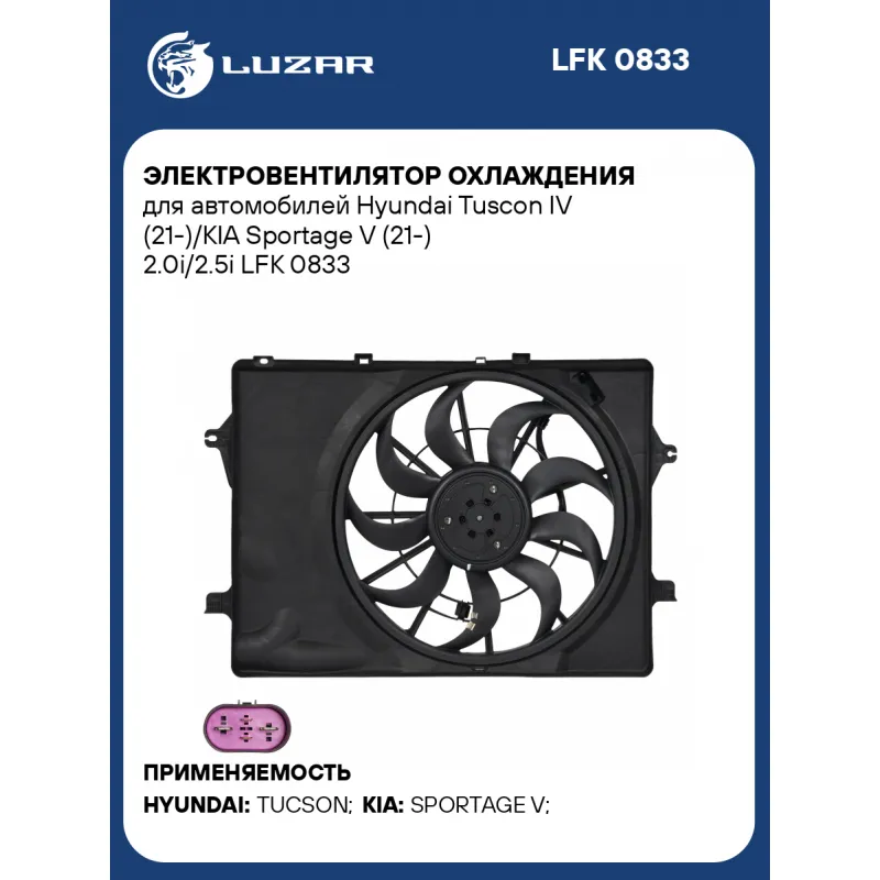 Электровентилятор охлаждения для автомобилей Hyundai Tuscon IV (21-)/KIA Sportage V (21-) 2.0i/2.5i Характеристики: Артикул: LFK 0833 OEM номера: 25380N9600 Мощность, Вт: 216 Сила тока, А: 18 Кондиционер: + Обороты, об/мин: 2200 Тип вентилятора: осевой Диаметр крыльчатки, мм (1): 458 Диаметр крыльчатки, мм (2): - Сопутствующий товар: Радиаторы охлаждения: LRc 0820 Сопутствующий товар: Радиаторы кондиционера (конденсеры): LRAC 0840 Количество на автомобиль: 1 Напряжение, В: 12 Комплектация: Электровентилятор охлаждения - 1 шт Паспорт изделия - 1 шт Гарантия: от 1 года.