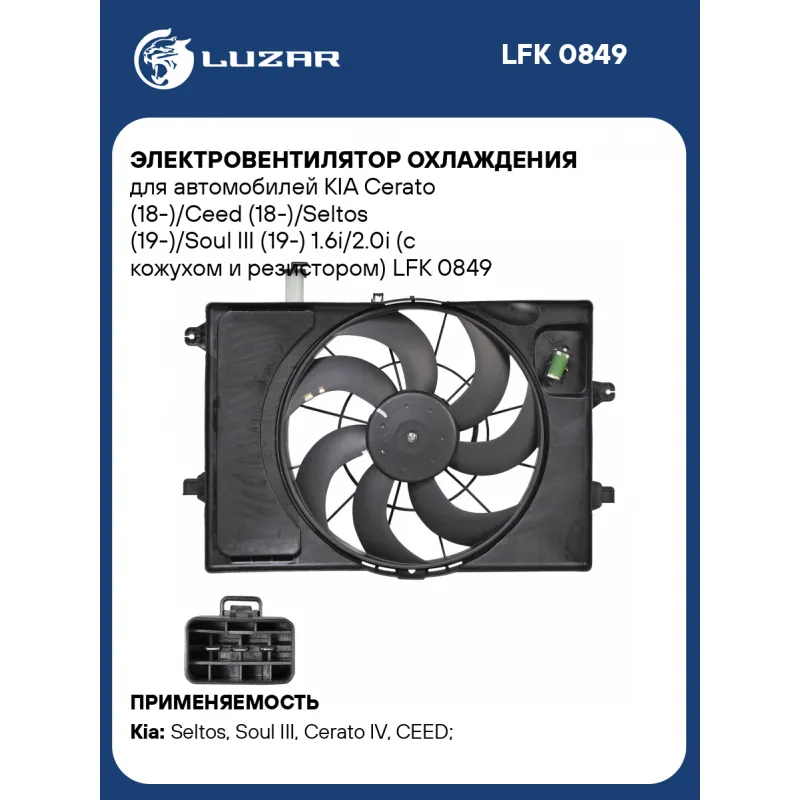 Электровентилятор охлаждения для автомобилей KIA Cerato (18-)/Ceed (18-)/Seltos (19-)/Soul III (19-) 1.6i/2.0i (с кожухом и резистором) Характеристики: Артикул: LFK 0849 OEM номера: 25380J3140, 25380M6000 Сопутствующий товар: Радиаторы охлаждения: LRc 08131 Сопутствующий товар: Блоки охлаждения (радиатор + конденсор + вентилятор): LRAC 0831 Количество на автомобиль: 1 Напряжение, В: 12 Сила тока, А: 12 Диаметр крыльчатки, мм (1): 420 Кондиционер: + Обороты, об/мин: 1700 Тип вентилятора: осевой Мощность, Вт: 144 Сопутствующий товар: Резисторы нагрузочные: LFR 08L4 Подходит для авто: Kia Seltos (19-), Soul III (19-), Cerato IV (18-), CEED (18-) Для проверки применяемости отправьте VIN автомобиля через вкладку "Есть вопросы о товаре?" Комплектация: Электровентилятор охлаждения - 1 шт Паспорт изделия - 1 шт Гарантия: от 1 года.