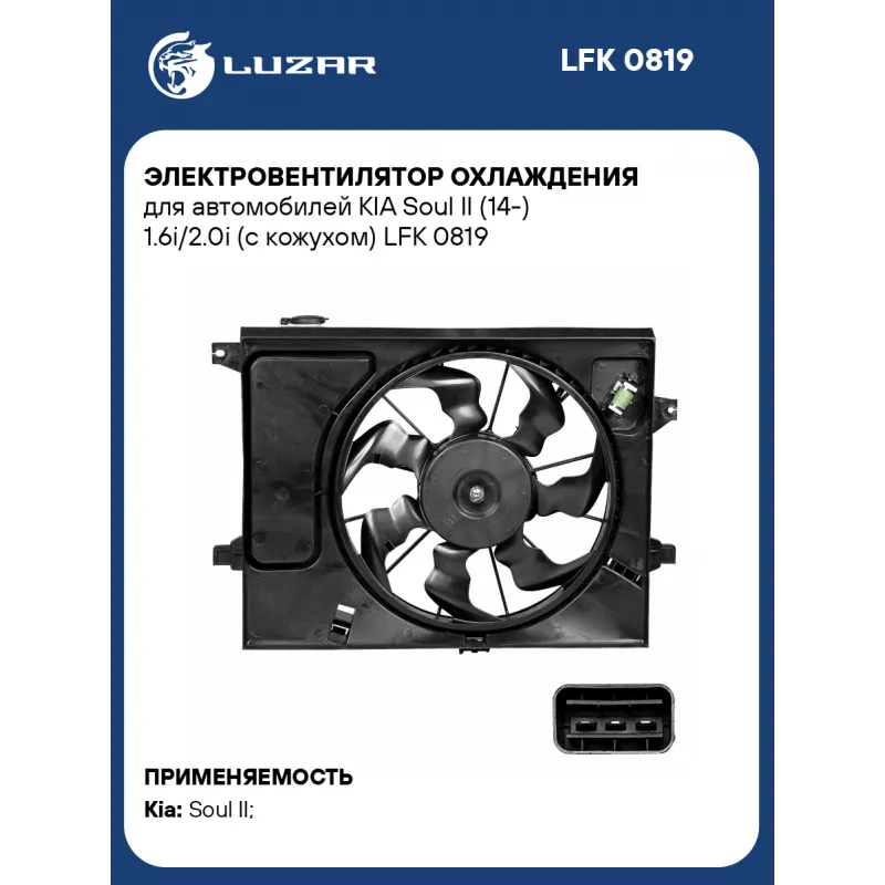 Электровентилятор охлаждения для автомобилей KIA Soul II (14-) 1.6i/2.0i (с кожухом) LFK 0819 LUZAR