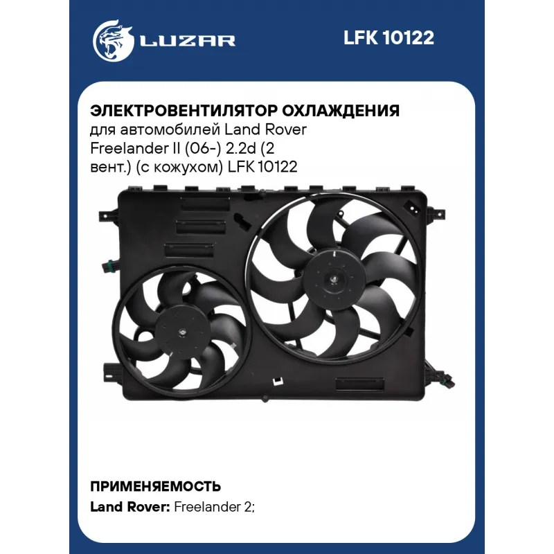 Электровентилятор охлаждения для автомобилей Land Rover Freelander II (06-) 2.2d (2 вент.) (с кожухом) Характеристики: Артикул: LFK 10122 OEM номера: LR011905, LR002660 Количество на автомобиль: 1 Напряжение, В: 12 Сила тока, А: 15,2 Кондиционер: A/C+ Обороты, об/мин: 2920 Тип вентилятора: осевой Мощность, Вт: 182,4 Сопутствующий товар: Резисторы нагрузочные: LFR 1502 Сопутствующий товар: Модули управления вентилятора: LFR 1060 Модуль управления: Не идет в сборе. Продается отдельно под артикулом LFR 1060. Подходит для авто: Land Rover Freelander 2 (11-), Freelander 2 (06-) Для проверки применяемости отправьте VIN автомобиля через вкладку "Есть вопросы о товаре?" Комплектация: Электровентилятор охлаждения - 1 шт Паспорт изделия - 1 шт Комплект крепежа - 1 шт Гарантия: от 1 года.