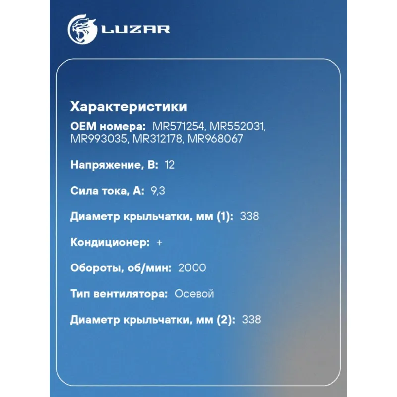 Электровентилятор охлаждения для автомобилей Mitsubishi Galant (03-) 2.4i (2 вентилятора) Характеристики: Артикул: LFK 1103 OEM номера: MR571254, MR552031, MR993035, MR312178, MR968067 Мощность, Вт: 125,5 Сила тока, А: 9,3 Кондиционер: + Обороты, об/мин: 2000 Тип вентилятора: осевой Диаметр крыльчатки, мм (1): 338 Диаметр крыльчатки, мм (2): 338 Напряжение, В: 12 Количество на автомобиль: 1 Комплектация: Электровентилятор охлаждения - 1 шт Паспорт изделия - 1 шт Гарантия: от 1 года.