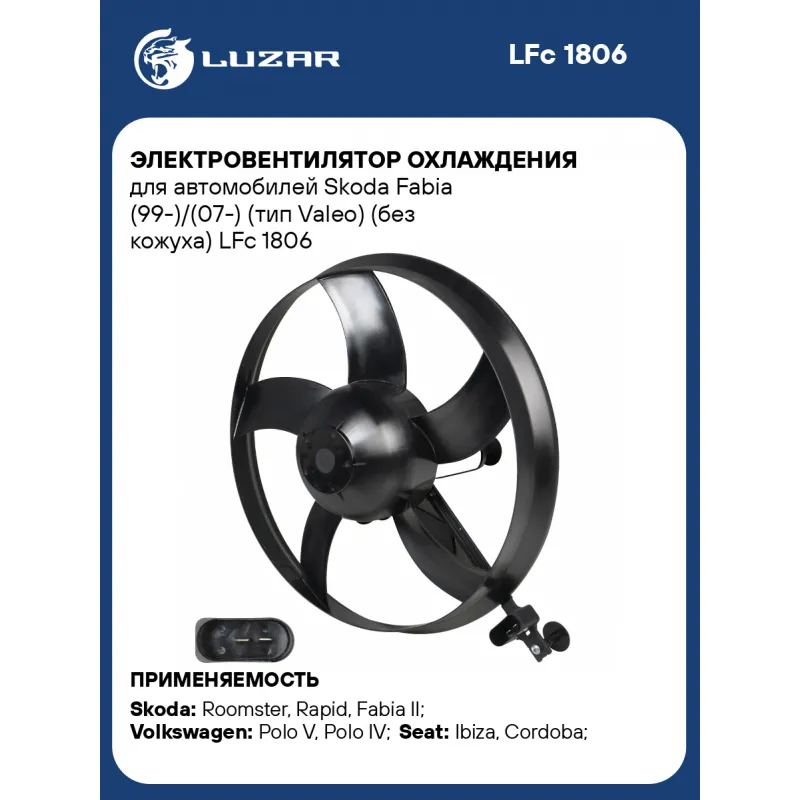 Электровентилятор охлаждения для автомобилей Skoda Fabia (99-)/(07-) (тип Valeo) (без кожуха) Характеристики: Артикул: LFc 1806 OEM номера: 6Q0959455AF, 6Q0959455E Количество на автомобиль: 1 Напряжение, В: 12 Сила тока, А: 6,5 Диаметр крыльчатки, мм (1): 304 Кондиционер: +/- Обороты, об/мин: 1900 Тип вентилятора: осевой Диаметр крыльчатки, мм (2): - Мощность, Вт: 78 Ограничение производителя: Valeo Подходит для авто: Skoda Roomster (06-), Rapid (12-), Fabia II (07-), Fabia I (99-) Volkswagen Polo V (09-), Polo IV (01-) Seat Ibiza (08-), Ibiza (00-), Ibiza (00-), Cordoba (00-), Cordoba (00-) Для проверки применяемости отправьте VIN автомобиля через вкладку "Есть вопросы о товаре?" Комплектация: Электровентилятор охлаждения - 1 шт Паспорт изделия - 1 шт Гарантия: от 1 года.