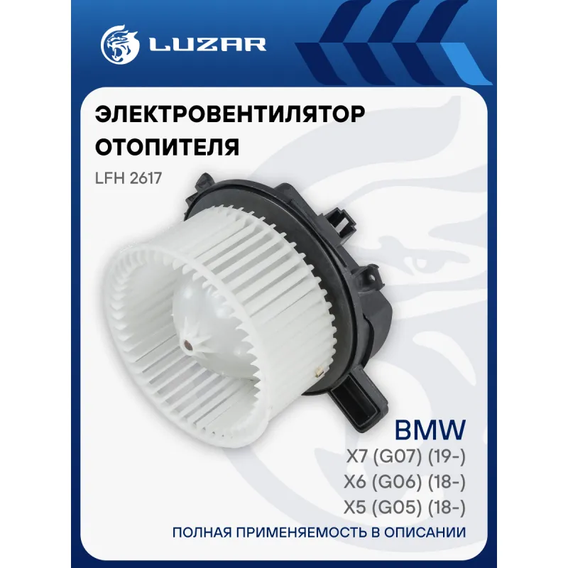 Электровентилятор отопителя для автомобилей BMW X5 (G05) (18-)/X6 (G06) (18-)/X7 (G07) (19-) Характеристики: Артикул: LFh 2617 OEM номера: 64119490192, 64117941719 Мощность, Вт: 324 Сила тока, А: 24 Диаметр крыльчатки, мм: 147 Обороты, об/мин: 3800 Высота крыльчатки, мм: 70 Напряжение, В: 12 Количество на автомобиль: 1 Тип вентилятора: центробежный Подходит для авто: BMW X5 G05 (18-), X6 G06 (19-), X7 G07 (18-) Для проверки применяемости отправьте VIN автомобиля через вкладку "Есть вопросы о товаре?" Комплектация: Электровентилятор отопителя - 1 шт Паспорт изделия - 1 шт Гарантия: от 1 года.