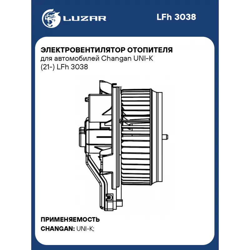 Электровентилятор отопителя для автомобилей Changan UNI-K (21-) LFh 3038 LUZAR