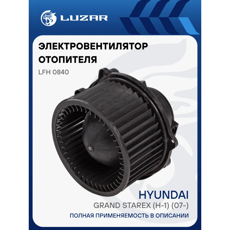 Электровентилятор отопителя для автомобилей Hyundai Grand Starex (H-1) (07-) Характеристики: Артикул: LFh 0840 OEM номера: 97114-4H000 Количество на автомобиль: 1 Диаметр крыльчатки, мм: 153 Обороты, об/мин: 3100 Напряжение, В: 12 Сила тока, А: 23 Тип вентилятора: центробежный Высота крыльчатки, мм: 75 Мощность, Вт: 276 Сопутствующий товар: Радиаторы отопителя: LRh 0819 Сопутствующий товар: Резисторы нагрузочные: LFR 0840; LFR 0885 Кондиционер: A/C с ручным управлением Подходит для авто: Hyundai Starex (H-1) (07-) Для проверки применяемости отправьте VIN автомобиля через вкладку "Есть вопросы о товаре?" Комплектация: Электровентилятор отопителя - 1 шт Паспорт изделия - 1 шт Гарантия: от 1 года.