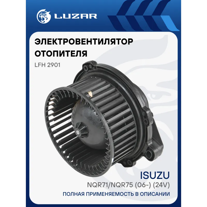 Электровентилятор отопителя для автомобилей Isuzu NQR71/NQR75 (06-) (24V) Характеристики: Артикул: LFh 2901 OEM номера: 8972119540, 8971016561, 8972119530, 8971016571 Количество на автомобиль: 1 Диаметр крыльчатки, мм: 149 Обороты, об/мин: 3000 Напряжение, В: 24 Сила тока, А: 7 Тип вентилятора: центробежный Высота крыльчатки, мм: 60 Мощность, Вт: 168 Подходит для авто: ISUZU NQR71 (06-), NQR75 (06-), NQR71 (06-), NQR75 (06-) Для проверки применяемости отправьте VIN автомобиля через вкладку "Есть вопросы о товаре?" Комплектация: Электровентилятор отопителя - 1 шт Паспорт изделия - 1 шт Гарантия: от 1 года.