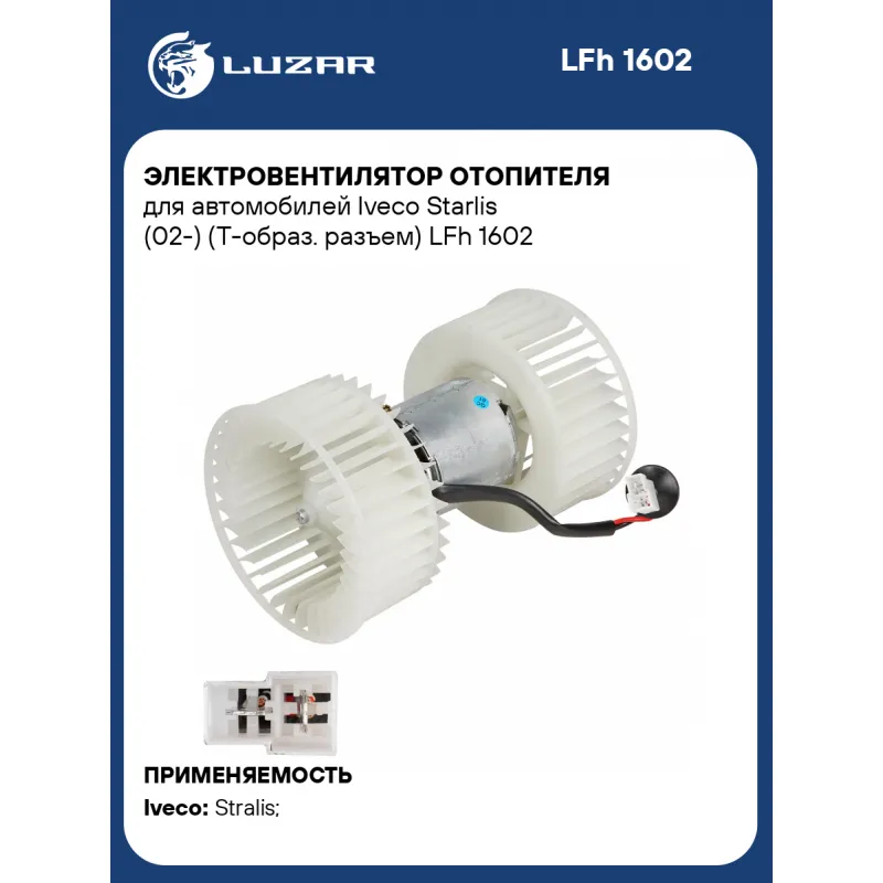 Электровентилятор отопителя для автомобилей Iveco Starlis (02-) (T-образ. разъем) Характеристики: Артикул: LFh 1602 OEM номера: 42553954, 42538757 Количество на автомобиль: 1 Диаметр крыльчатки, мм: 147 Обороты, об/мин: 3200 Напряжение, В: 24 Сила тока, А: 10 Тип вентилятора: центробежный Высота крыльчатки, мм: 65,5 Мощность, Вт... Читать полностью →