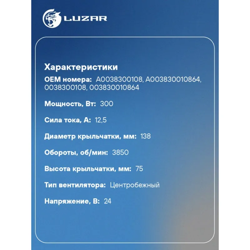 Электровентилятор отопителя для автомобилей КАМАЗ 5490 (13-)/Mercedes-Benz Axor (01-) LFh 0790 LUZAR
