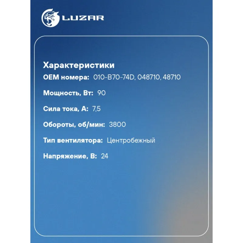 Электровентилятор отопителя для автомобилей МАЗ 103; 105; 206; 215; 226; 231 (24В) LFh 1203 LUZAR