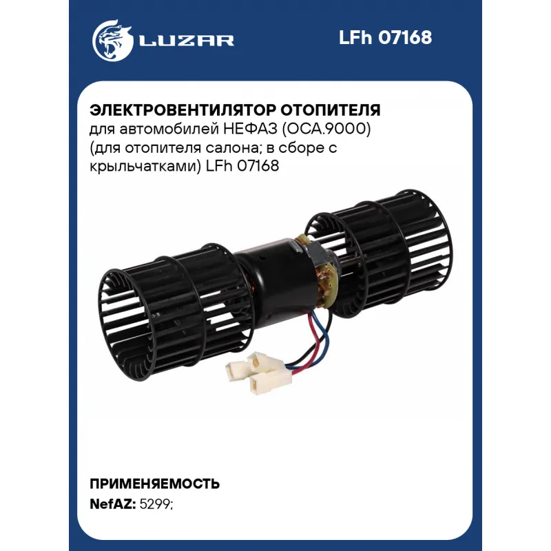 Электровентилятор отопителя для автомобилей НЕФАЗ (ОСА.9000) (для отопителя салона; в сборе с крыльчатками) Характеристики: Артикул: LFh 07168 OEM номера: 681.3780, 681.3780-10 Количество на автомобиль: 1 Диаметр крыльчатки, мм: 86,7 Обороты, об/мин: 3800 Напряжение, В: 24 Сила тока, А: 7 Тип вентилятора: Центробежный Высота крыльчатки, мм: 87 Мощность, Вт: 168 Подходит для авто: NefAZ 5299 Для проверки применяемости отправьте VIN автомобиля через вкладку "Есть вопросы о товаре?" Комплектация: Электровентилятор отопления - 1 шт Паспорт изделия - 1 шт Гарантия: от 1 года.