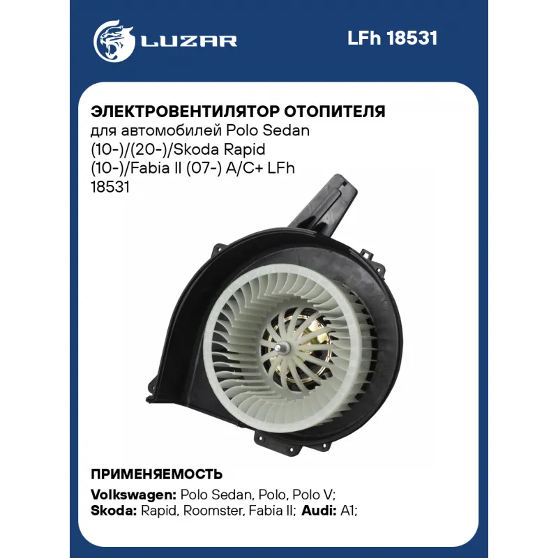 Электровентилятор отопителя для автомобилей Polo Sedan (10-)/(20-)/Skoda Rapid (10-)/Fabia II (07-) A/C+ Характеристики: Артикул: LFh 18531 OEM номера: 6Q1820015H, 6Q1820015C, 6Q1819015E, 6R1819015J, 6R1819015, 6Q1819015J, 6Q1819015B, 6Q1819015C, 6Q1819015, 6R1819015A, 6Q1819015H Количество на автомобиль: 1 Диаметр крыльчатки, мм: 173 Обороты, об/мин: 2700 Напряжение, В: 12 Сила тока, А: 24 Тип вентилятора: Центробежный Высота крыльчатки, мм: 70 Мощность, Вт: 288 Сопутствующий товар: Радиаторы отопителя: LRh 1853 Сопутствующий товар: Резисторы нагрузочные: LFR 18531; LFR 1854 Кондиционер: + Подходит для авто: Volkswagen Polo Sedan (RUS) (10-), Polo (RUS) (20-), Polo V (09-), Polo Sedan (RUS) (10-) Skoda Rapid (20-), Rapid (12-), Roomster (06-), Fabia II (07-) Audi A1 (10-) Для проверки применяемости отправьте VIN автомобиля через вкладку "Есть вопросы о товаре?" Комплектация: Паспорт изделия - 1 шт Электровентилятор отопителя - 1 шт Гарантия: от 1 года.