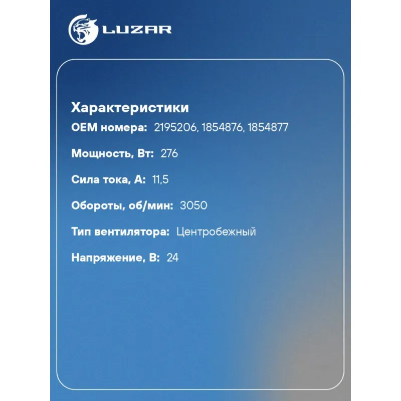 Электровентилятор отопителя для автомобилей Scania 5 (P,G,R,T- series) (03-) (в корпусе с блоком управления) (LFh 2705) Характеристики: Артикул: LFh 2705 OEM номера: 2195206, 1854876, 1854877 Количество на автомобиль: 1 Обороты, об/мин: 3050 Напряжение, В: 24 Сила тока, А: 11,5 Тип вентилятора: центробежный Мощность, Вт: 276 Конструкция: в корпусе со встроенным блоком управления Подходит для авто: Scania P-serie (04-), G-serie (04-), R-serie (04-), T-serie (04-), P-serie (04-) Для проверки применяемости отправьте VIN автомобиля через вкладку "Есть вопросы о товаре?" Комплектация: Электровентилятор отопителя - 1 шт Паспорт изделия - 1 шт Гарантия: от 1 года.