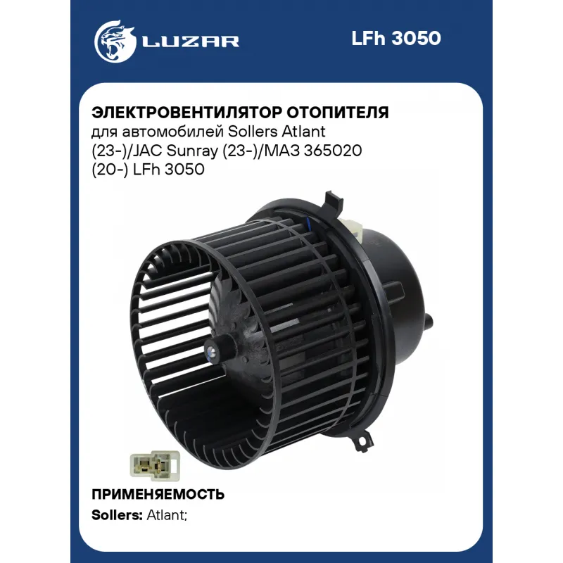 Электровентилятор отопителя для автомобилей Sollers Atlant (23-)/JAC Sunray (23-)/МАЗ 365020 (20-) Характеристики: Артикул: LFh 3050 OEM номера: 8126100R0090F121, JB40015B002Z Мощность, Вт: 234 Сила тока, А: 19,5 Диаметр крыльчатки, мм: 143,7 Обороты, об/мин: 3800 Высота крыльчатки, мм: 74 Напряжение, В: 12 Количество на автомоб... Читать полностью →