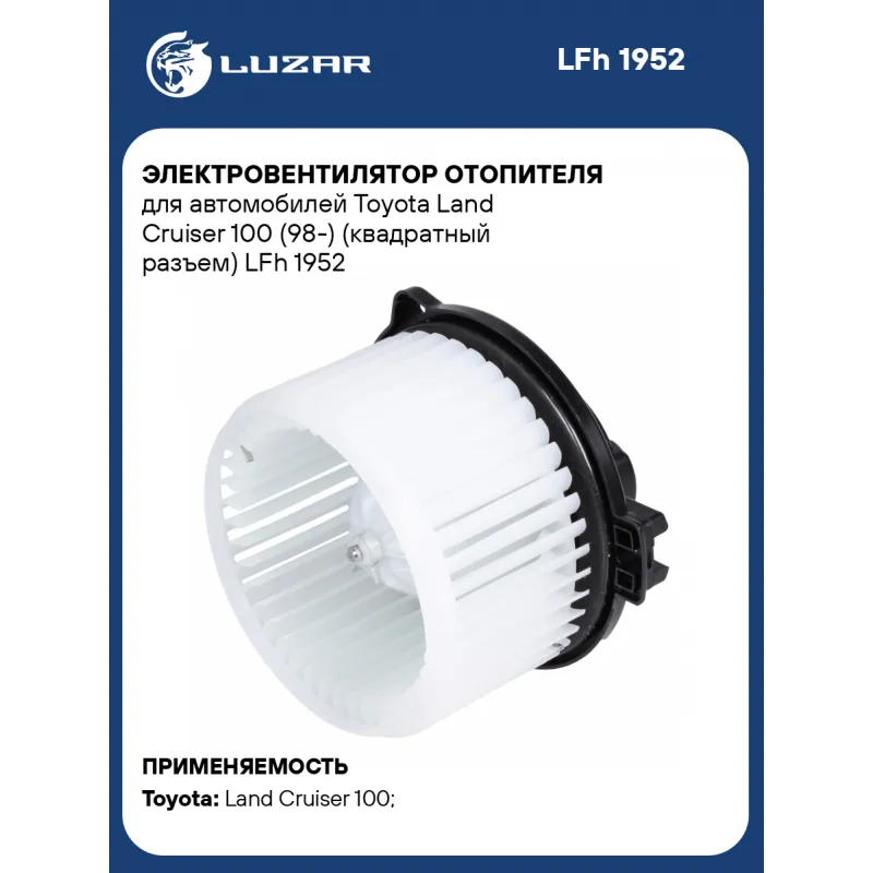 Электровентилятор отопителя для автомобилей Toyota Land Cruiser 100 (98-) (квадратный разъем) Характеристики: Артикул: LFh 1952 OEM номера: 87103-60220 Количество на автомобиль: 1 Диаметр крыльчатки, мм: 147 Обороты, об/мин: 3000 Напряжение, В: 12 Сила тока, А: 20,5 Тип вентилятора: центробежный Высота крыльчатки, мм: 88,5 Мощность, Вт: 246 Подходит для авто: Toyota Land Cruiser 100 (98-), Land Cruiser 100 (98-) Для проверки применяемости отправьте VIN автомобиля через вкладку "Есть вопросы о товаре?" Комплектация: Электровентилятор отопителя - 1 шт Паспорт изделия - 1 шт Гарантия: от 1 года.